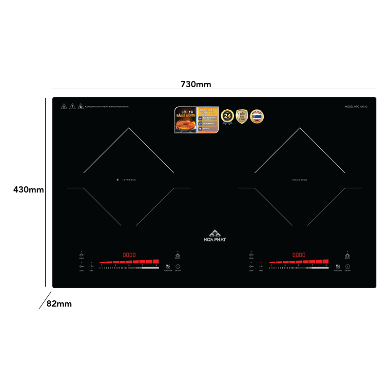 Chi tiết thông số sản phẩm: Bếp đôi điện từ kết hợp hồng ngoại Hòa Phát HPC H21A2