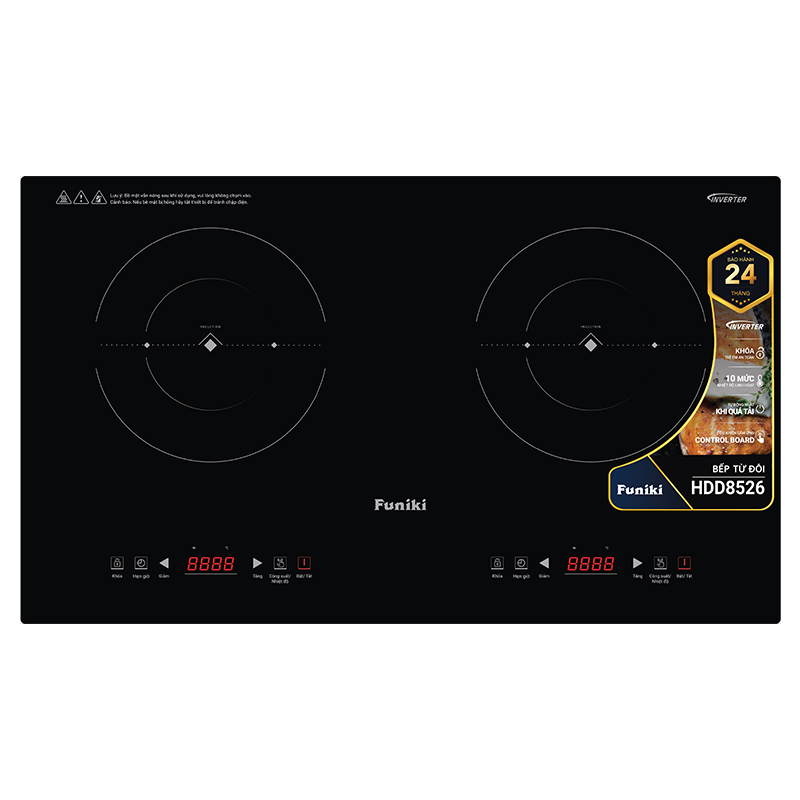 Bếp từ đôi Funiki HDD8526 sử dụng công nghệ Inverter giúp tiết kiệm điện năng, duy trì nhiệt độ ổn định và tăng tuổi thọ cho thiết bị. Công nghệ này hoạt động bằng cách điều chỉnh công suất linh hoạt, không bật/tắt đột ngột như bếp từ thông thường, nhờ đó: