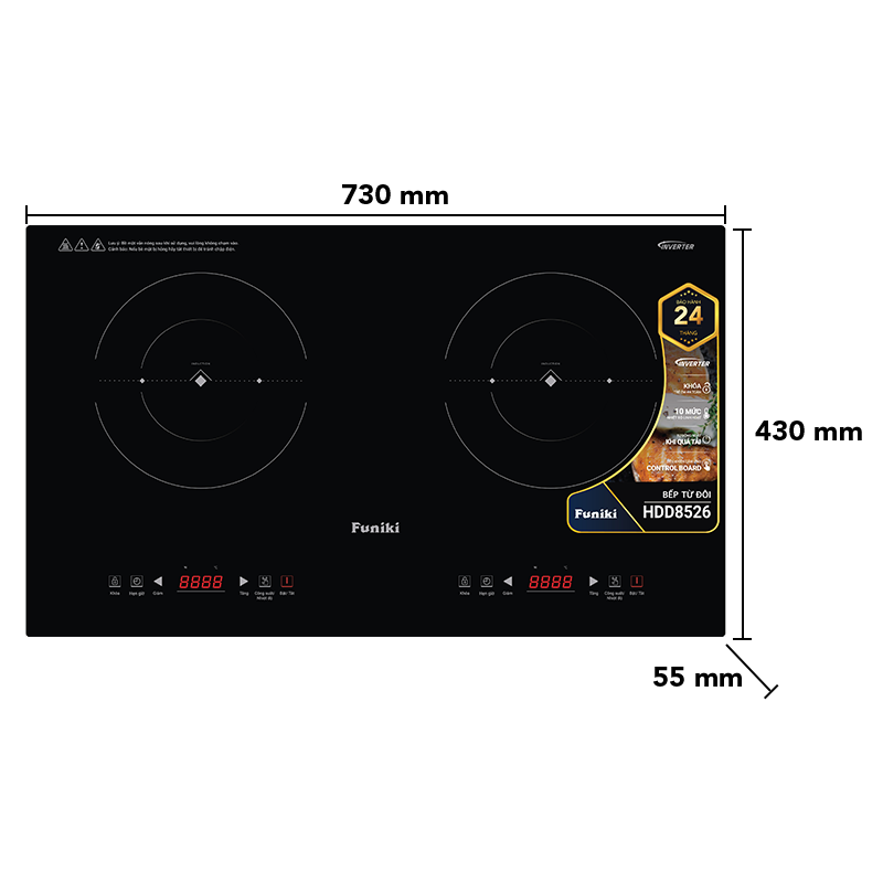 Chi tiết thông số sản phẩm: Bếp điện từ đôi Funiki HDD8526