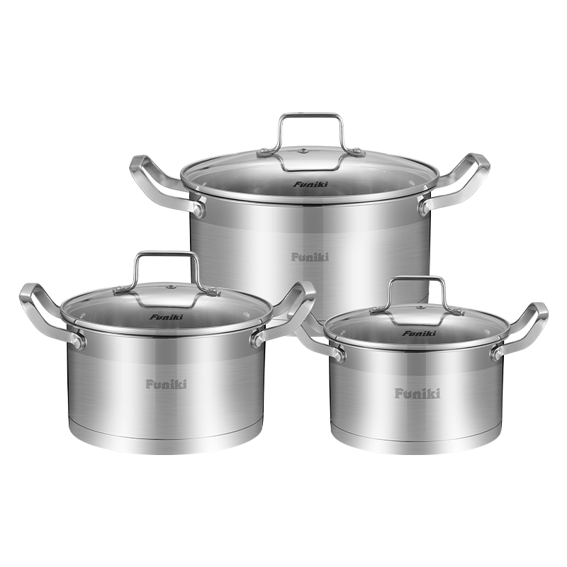 Chi tiết thông số sản phẩm: Bộ nồi inox 5 đáy Funiki HBNS551 (Size 16, 20, 24cm)
