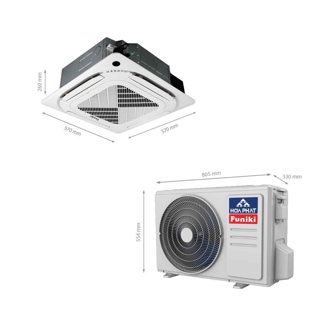 | Kích thước máy | Cụm trong nhà | mm | 570 × 570 × 260 | |
