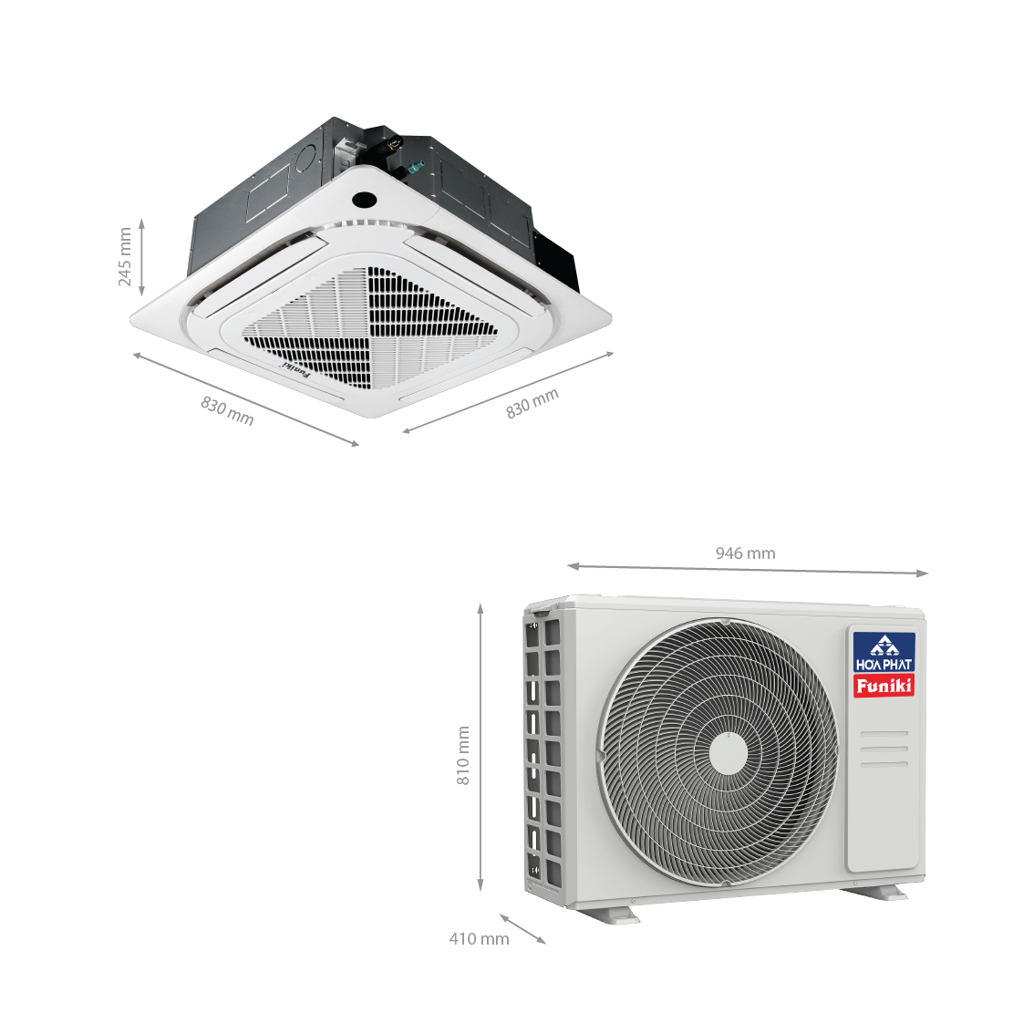 | Kích thước máy | Cụm trong nhà | mm | 830 × 830 × 245 | |