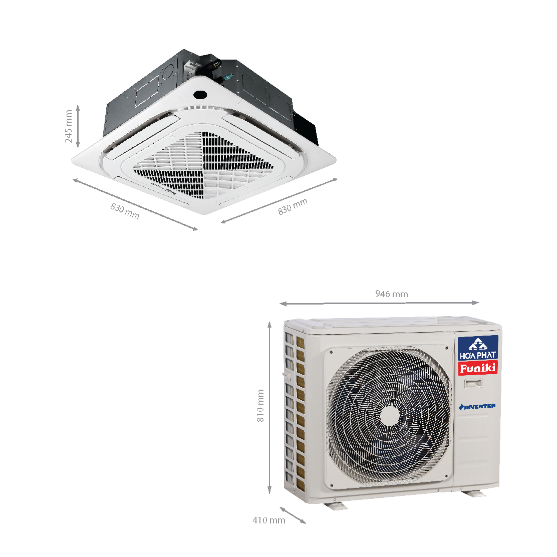 | Kích thước sản phẩm | Cụm trong nhà (R*S*C) | Dàn lạnh | mm | 830 x 830 x 245 |