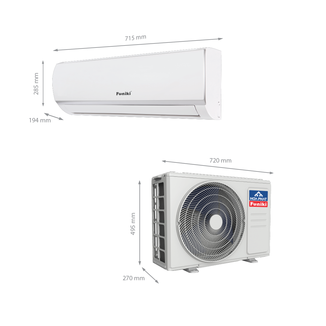 | Cụm ngoài trời | Kích thước máy (RxSxC) | mm | 720x270x495 |