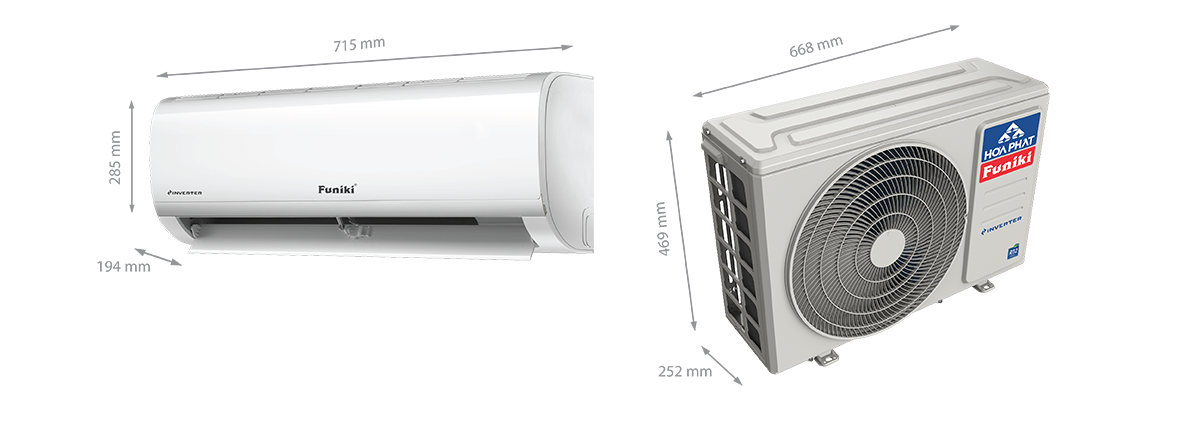 | Kích thước sản phẩm | Cụm trong nhà | mm | 715 x 194 x 285 |