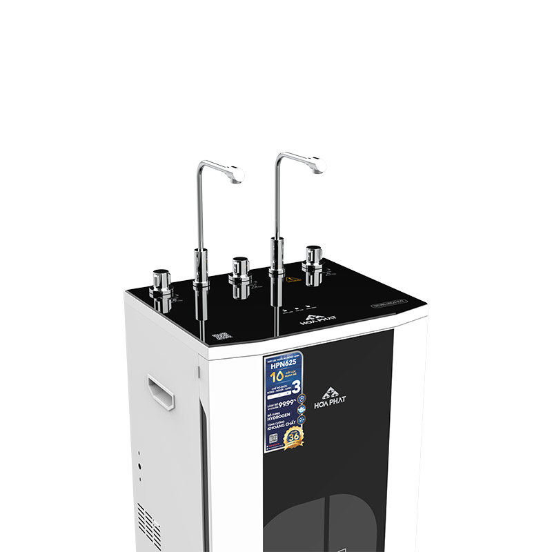 Máy lọc nước nóng lạnh Hòa Phát HPN625 sở hữu hệ thống 10 lõi lọc mạnh mẽ trong đó bao gồm 3 lõi lọc thô, màng RO công suất 100 GPD nhập khẩu Thái Lan và 6 lõi chức năng tăng cường khoáng chất và tích hợp lõi hydrogen chống lão hóa.
