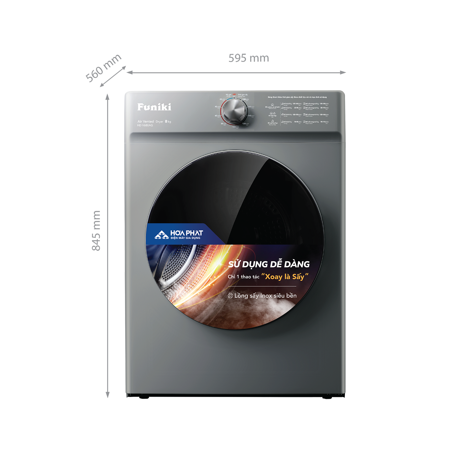 Chi tiết thông số sản phẩm: Máy sấy thông hơi Funiki HD V680AG 8kg