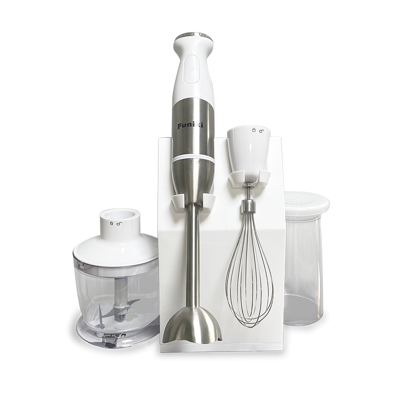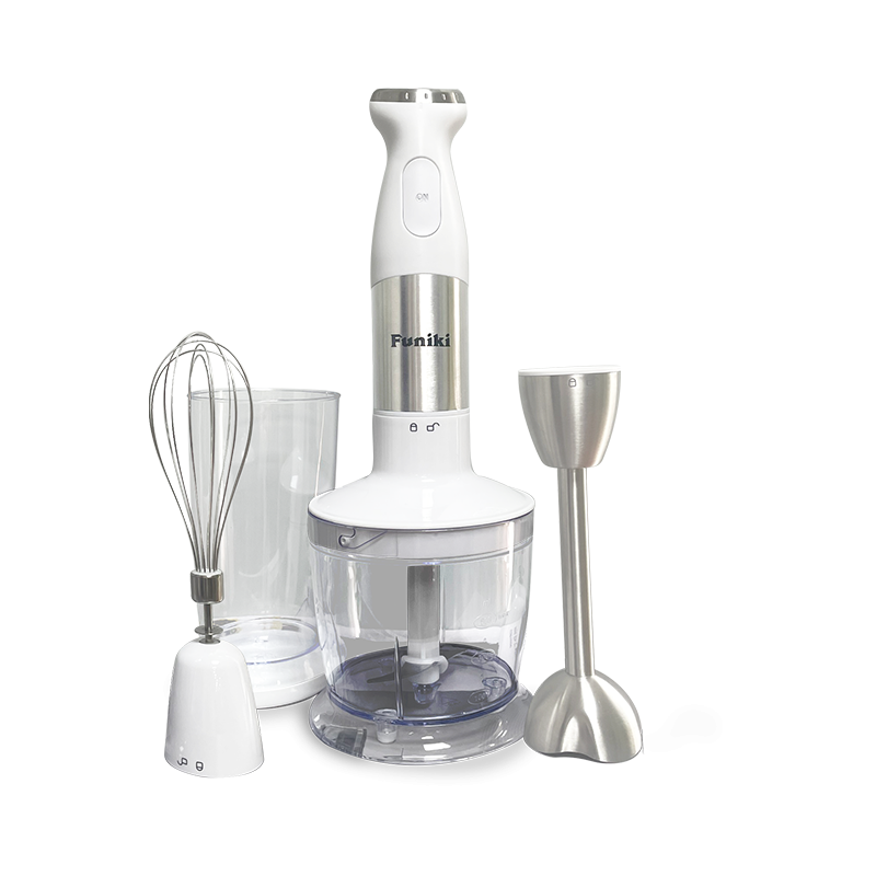- Phụ kiện đa dạng: 1 cối xay thịt, 1 cốc xay, thân máy kèm lưỡi dao thép không gỉ, và 1 cây đánh trứng đáp ứng mọi nhu cầu làm bếp của gia đình