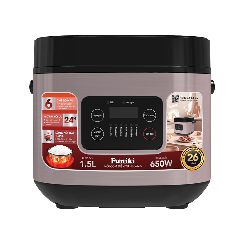 Chi tiết thông số sản phẩm: Nồi cơm điện tử 1.5L Funiki HEC6466