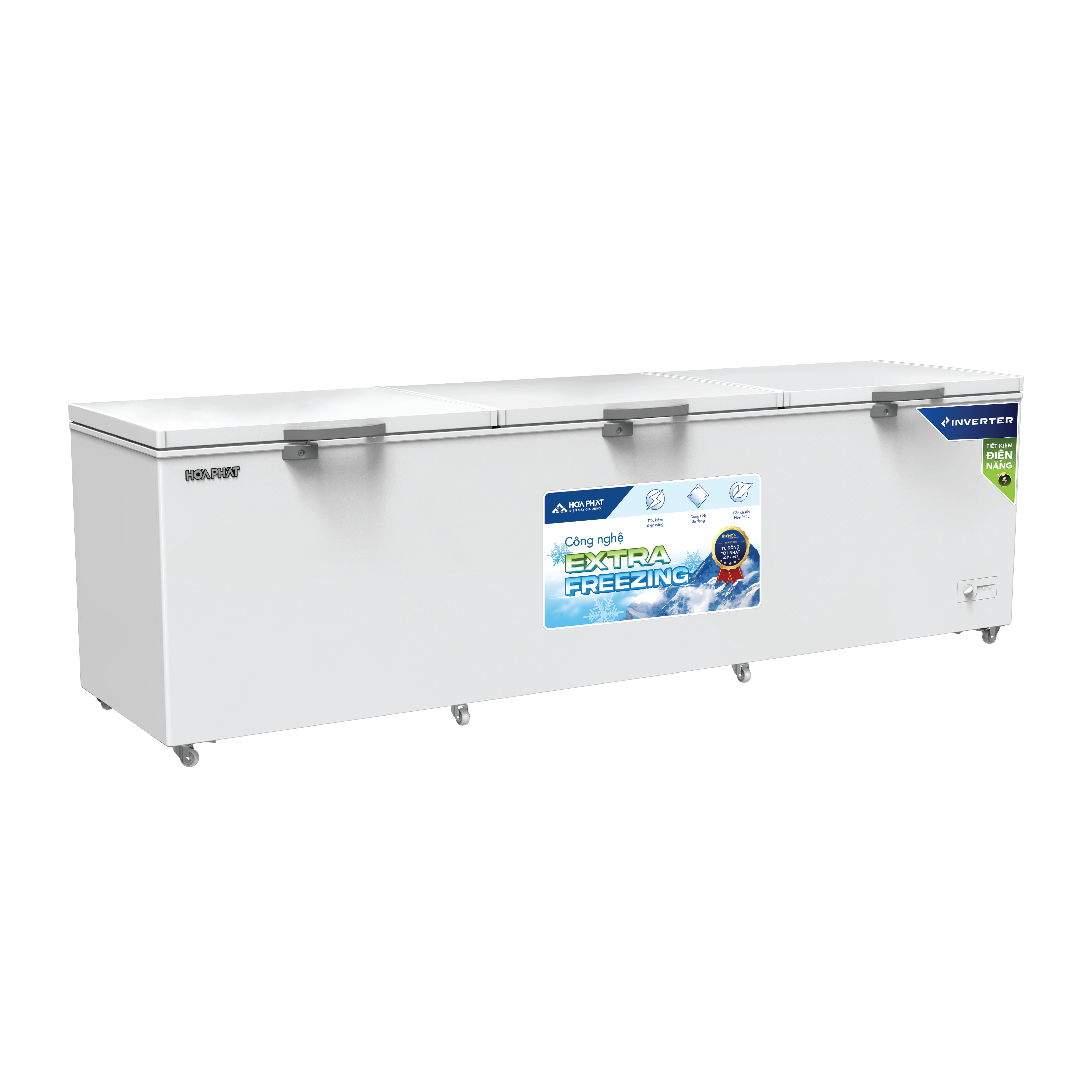 Tủ đông Hòa Phát dung tích lớn 1 ngăn 3 cánh HPF AD61190 sở hữu công nghệ Extra Freezing đông sâu tới -30 độ C (*Dựa trên kiểm nghiệm nội bộ từ NSX), dàn máy nén khoẻ và hệ thống chống thoát hơi lạnh với lớp bảo ôn dày 67mm