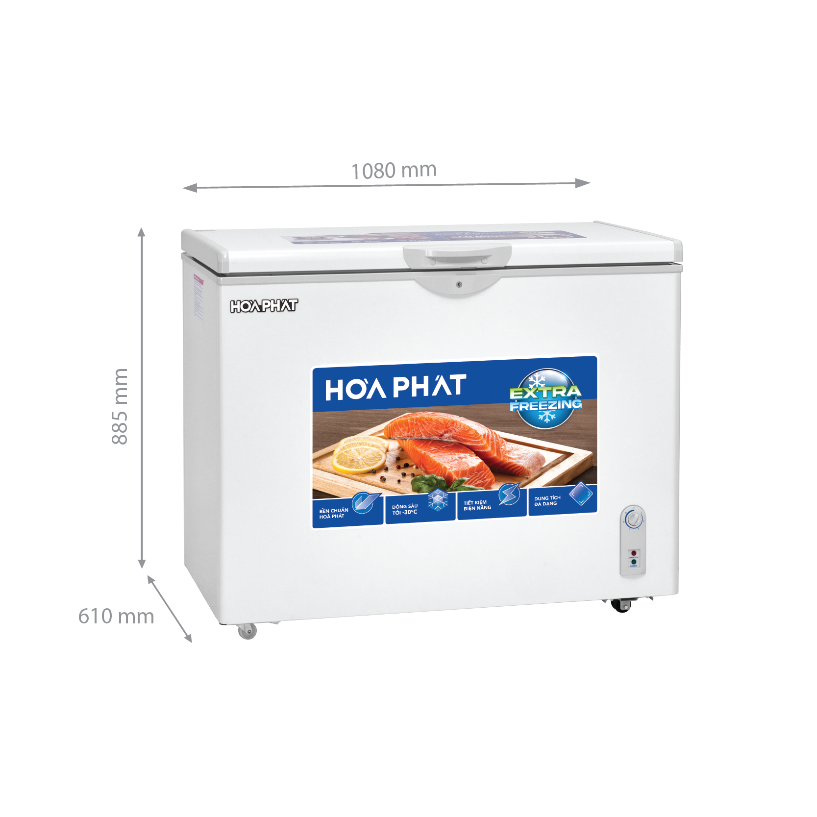 Sở hữu dung tích 252 L, tủ đông Hoà Phát có khả năng lưu trữ thực phẩm ấn tượng về số lượng cũng như chất lượng tươi ngon dài lâu