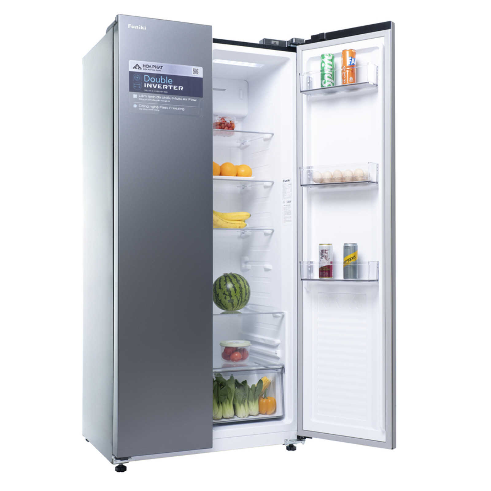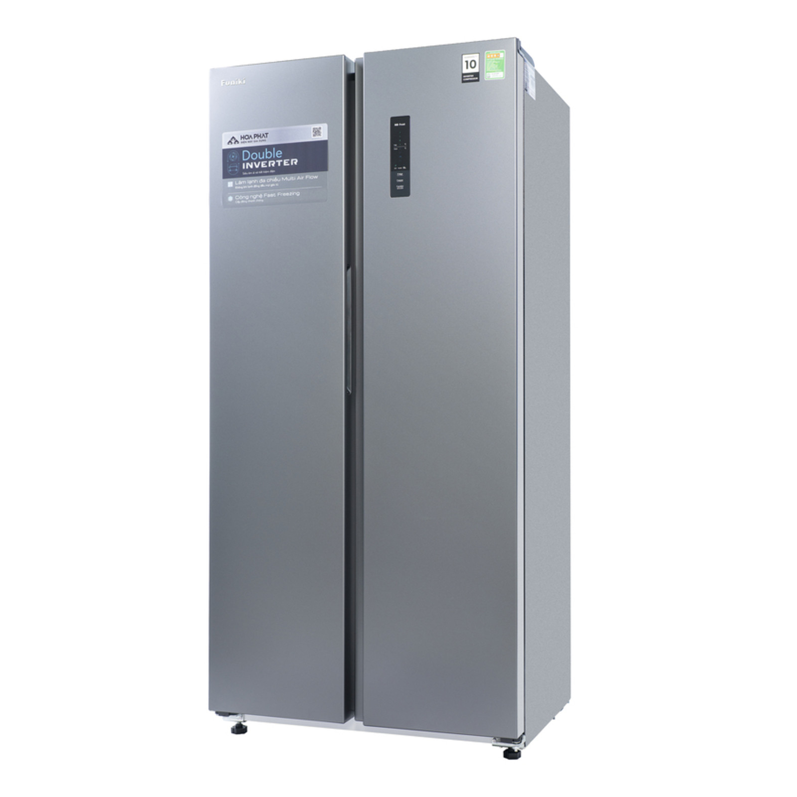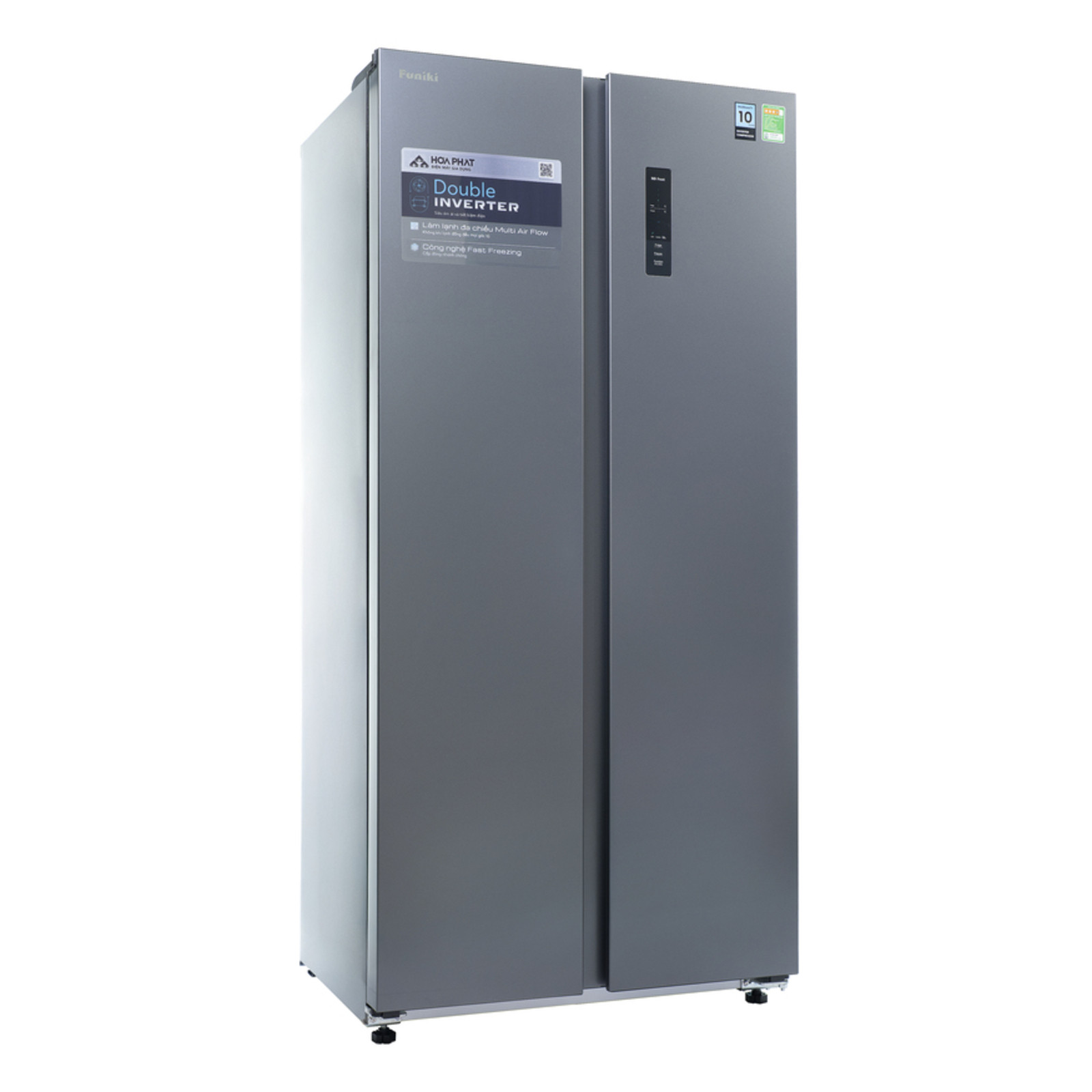Tủ lạnh Funiki Side by Side 430 lít HR SS8430SDG được sản xuất trên dây chuyền hiện đại, ứng dụng công nghệ Double Inverter vận hành êm ái và tiết kiệm điện năng, công nghệ làm lạnh đa chiều Multi Air Flow giúp làm lạnh đồng đều, là giải pháp hoàn hảo cho gia đình hiện đại giữ thực phẩm tươi ngon.