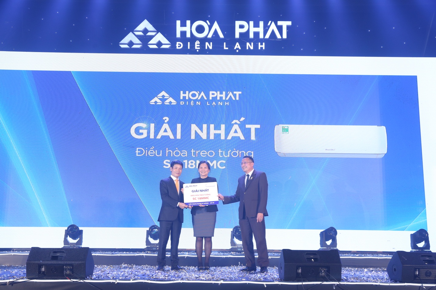 Cũng trong chương trình, Công ty Điện lạnh Hòa Phát đã trao bằng khen, giấy chứng nhận và những phần quà gửi tới khách hàng, đại lý, cửa hàng cũng như các nhà phân phối đã góp phần tạo nên những thành công của Điện lạnh Hòa Phát ngày hôm nay. Đây là những khách hàng đã gắn bó với Điện lạnh Hòa Phát ngay từ những ngày đầu. Chương trình được tiếp nối bằng những tiết mục nghệ thuật đặc sắc cùng phần quay số trúng thưởng được Điện lạnh Hòa Phát dành nhiều công sức chuẩn bị để dành tặng những khách hàng thân thiết của mình. Hai diễn viên hài Tự Long – Xuân Bắc với tiểu phẩm: “Dạy vợ” đã mang đến rất nhiều tiếng cười cho khán phòng. Rất đông khách mời đã tiến lại gần sân khâu để được chụp hình với thần tượng, hoặc dùng điện thoại quay lại tiết mục hài kịch này. Một số hình ảnh tại Hội nghị:Các dòng sản phẩm được trưng bày trực tiếp tại Hội nghị