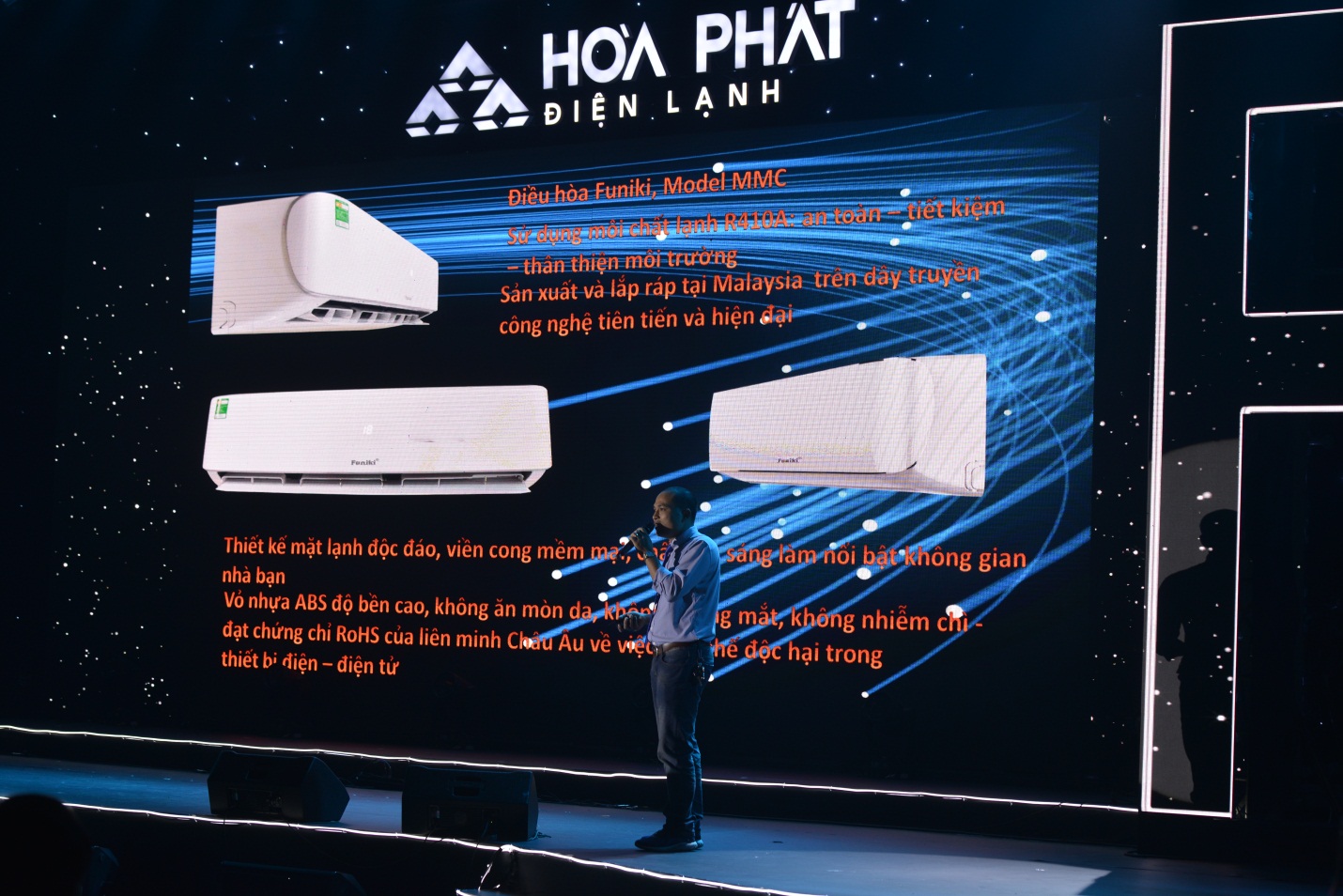 Chương trình được tiếp nối với phần ra mắt dòng sản phẩm mới Điều hòa Funiki MMC. Đây là dòng điều hòa sản xuất trên dây chuyền hiện đại tại Malaysia được Điện lanh Hòa Phát nhập khẩu và phân phối tại Việt Nam từ năm 2018. Một số đặc tính nổi bật của điều hoà Funiki MMC là: thiết kế nhỏ gọn, tinh tế; sử dụng Ga R410A an toàn, thân thiện với môi trường; làm lạnh, làm nóng cực nhanh; tiết kiệm điện năng…Phần ra mắt đầy ấn tượng của điều hòa Funiki MMC