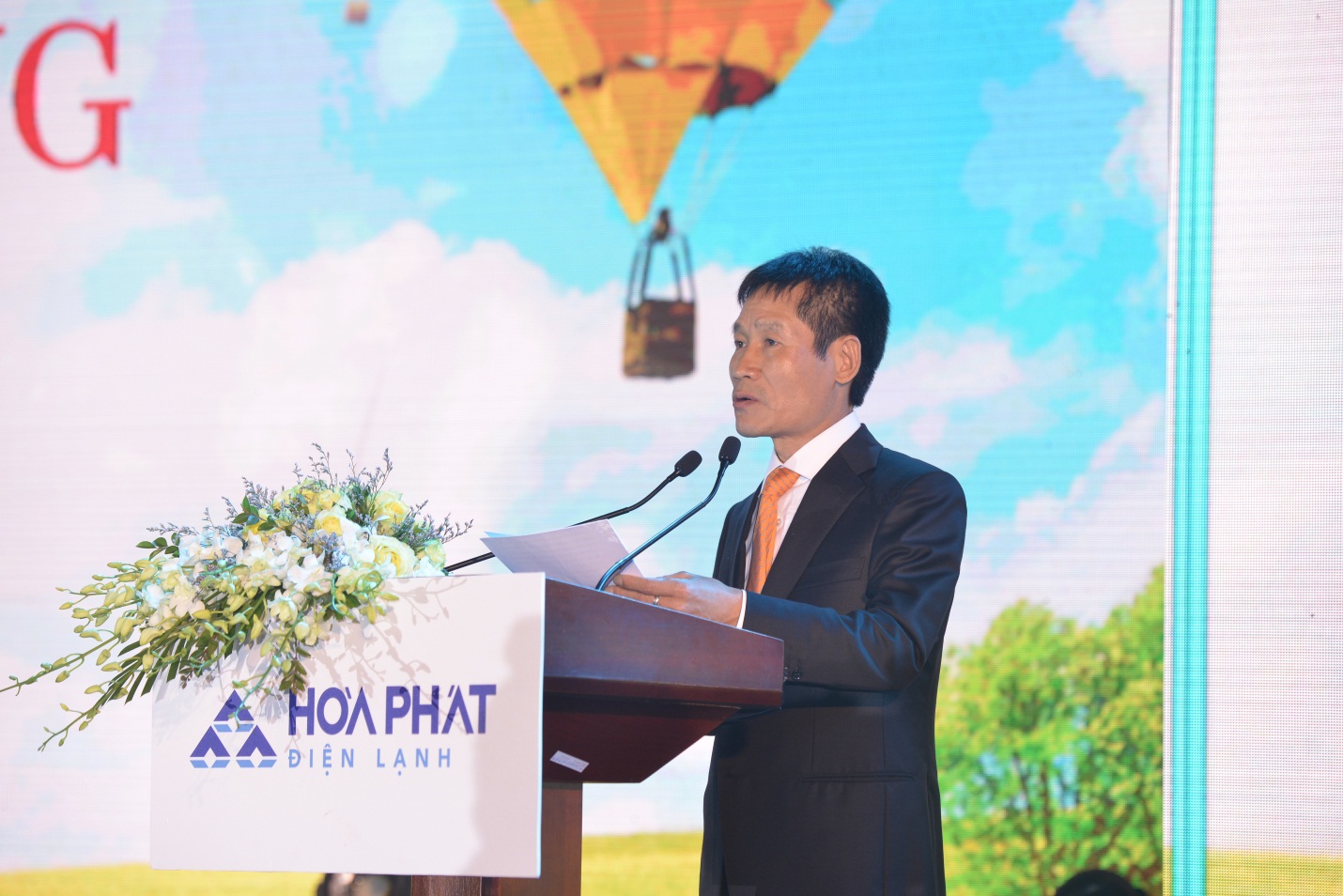 Ông Tạ Tuấn Quang – Giám đốc Công ty Điện lạnh Hòa Phát phát biểu tri ân các khách hàng, đối tác