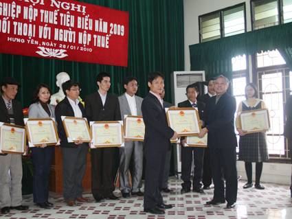 Ngày 26/1/2010, Hội nghị Tuyên dương các tổ chức và cá nhân thực hiện tốt nghĩa vụ thuế năm 2009 được tổ chức tại trụ sở UBND tỉnh Hưng Yên. Tại đây, lãnh đạo tỉnh Hưng Yên đã trao Bằng khen cho Công ty CP Tập đoàn Hòa Phát cùng một số Công ty thành viên như Nội thất, Điện lạnh, Ống thép và Khoáng sản Hòa Phát. Đây là sự ghi nhận kịp thời của địa phương đối với các doanh nghiệp có kết quả kinh doanh tốt, đặc biệt là thực hiện nghiêm túc nghĩa vụ thuế. Hội nghị có sự hiện diện của ông Trần Thanh Quán – Phó Chủ tịch UBND tỉnh Hưng Yên, Cục Thuế, đại diện các ban ngành đoàn thể tỉnh Hưng Yên cùng các doanh nghiệp tiêu biểu trên địa bàn tỉnh. Tại hội nghị, ông Lê Quang Huy, Cục trưởng Cục thuế Hưng Yên nhiệt liệt biểu dương các doanh nghiệp đã nỗ lực vượt khó và thực hiện xuất sắc nghĩa vụ thuế cho Nhà nước.